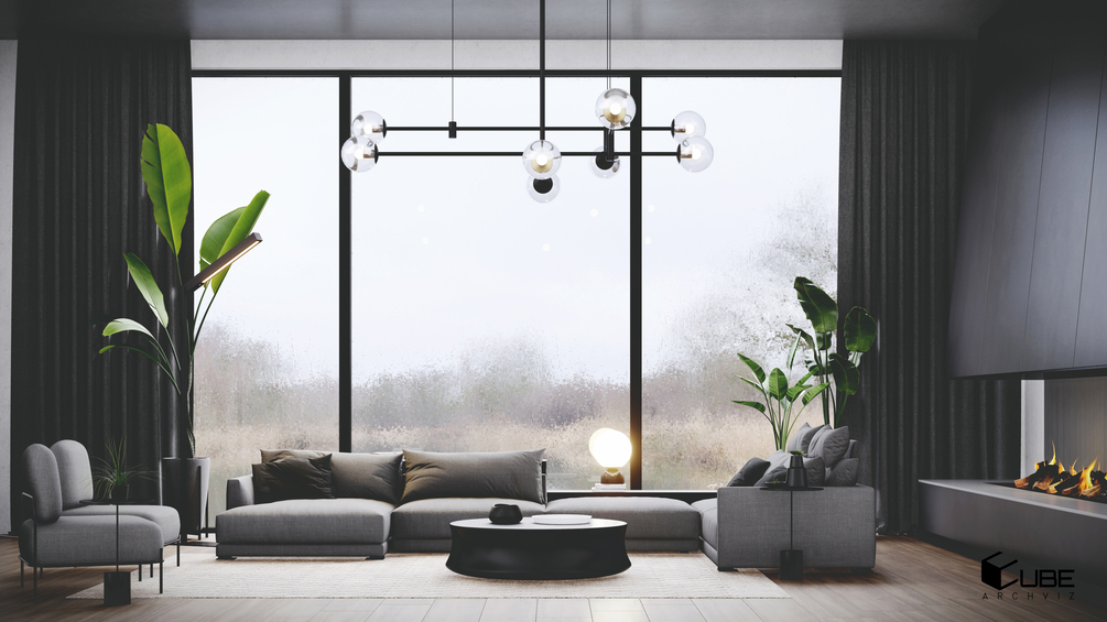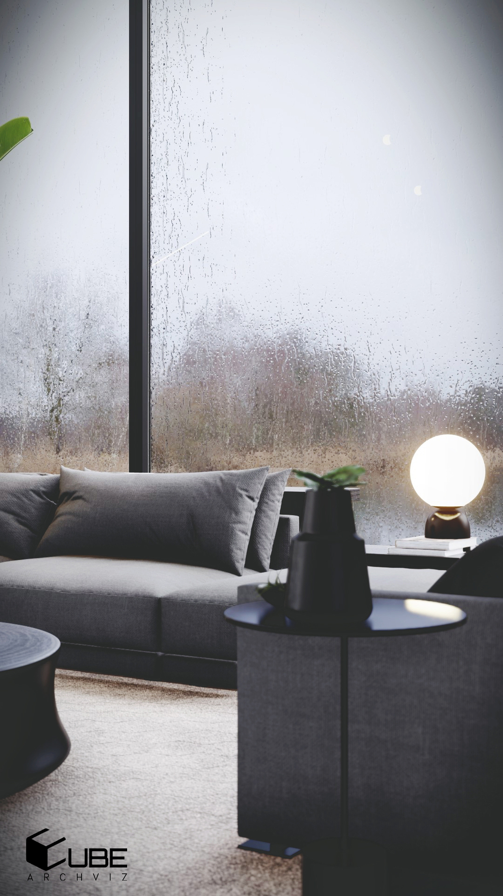 LUMION INTERIOR SCENE : LIVING ROOM RAINY DAY